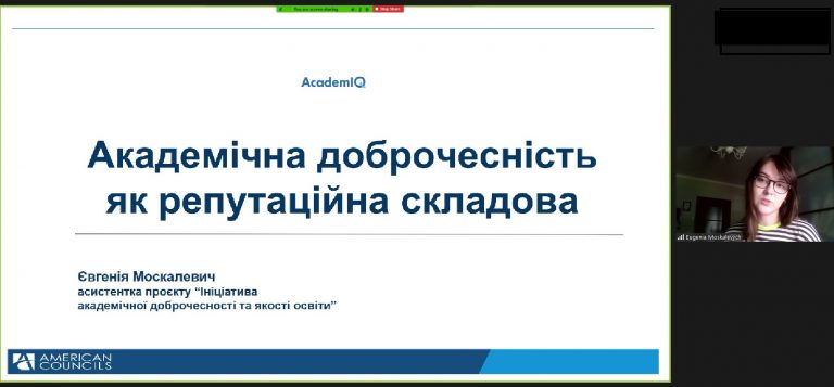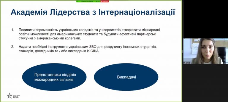 Під час вебінар було висвітлено дві теми: програми «Академія Лідерства з Інтернаціоналізації» і «COIL (Collaborative Online International Learning/ Модель Спільного Міжнародного Навчання Онлайн)» та «Академічна доброчесність як репутаційна складова». Зазначені вище програми покликані посилити спроможність ЗВО будувати ефективні партнерські стосунки з американськими колегами та співпрацювати у розрізі розробки модулів віртуального обміну за вже існуючими курсами разом з американськими викладачами-партнерами. Основним меседжем другої презентації стала важливість академічної доброчесності як одного із критеріїв встановлення тісних міжнародних партнерських зв’язків між університетами.