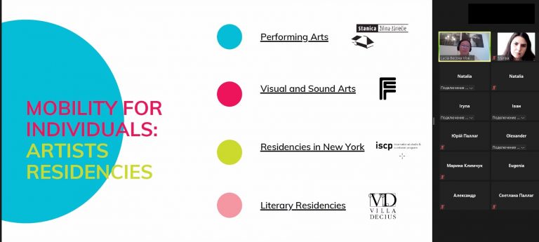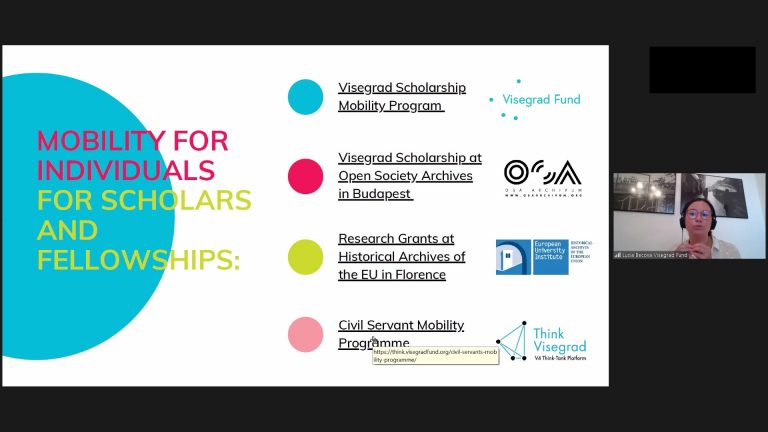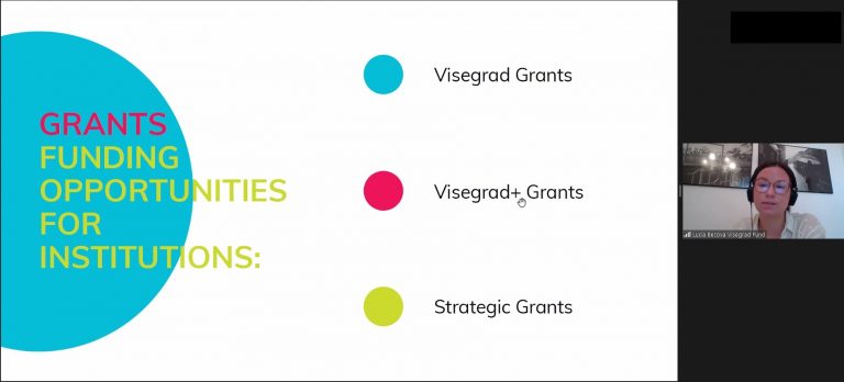 Мова йшла про історію створення Фонду та особливості його діяльності, можливості індивідуальної мобільності (для вчених та спипендіатів, а також резиденційні програми для митців) і грантові можливості, які передбачають фінансування для інституцій, зокрема Visegrad Grants, Visegrad + Grants і Strategic Grants. Окрім більш детальної інформації щодо можливостей, які надає Фонд, Люсія також закцентувала увагу на стратегічних пріорітетах, які мають бути закладені в основі проєктів, та основних напрямках, по яких проєкти загалом можуть бути подані.