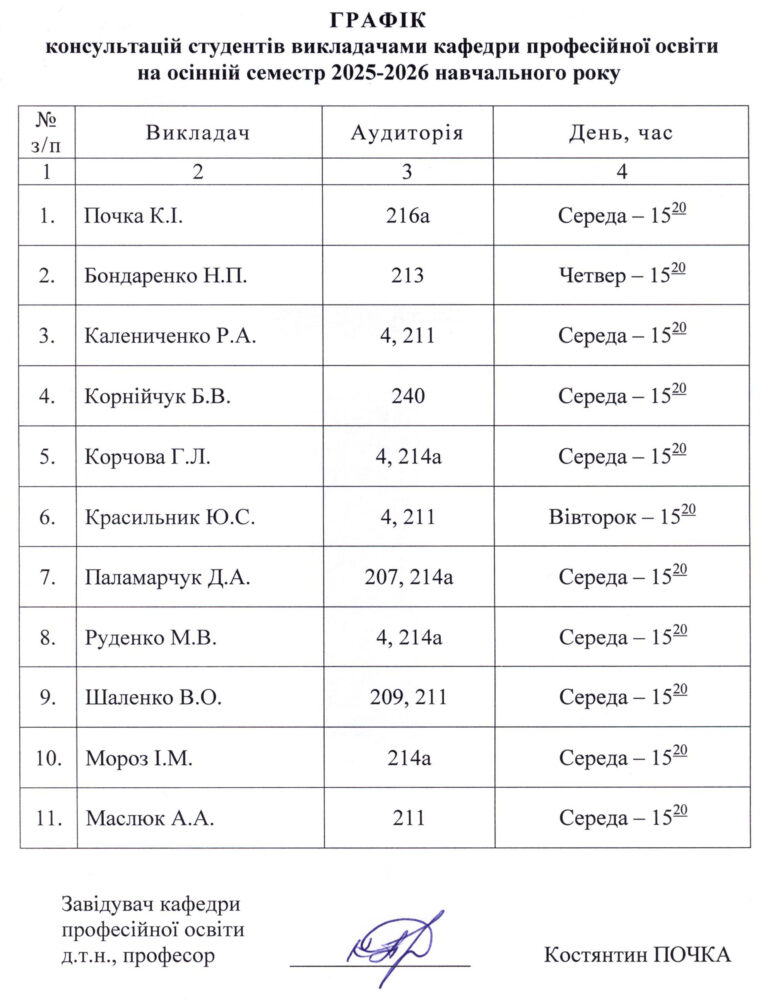 КАФЕДРА ПРОФЕСІЙНОЇ ОСВІТИ