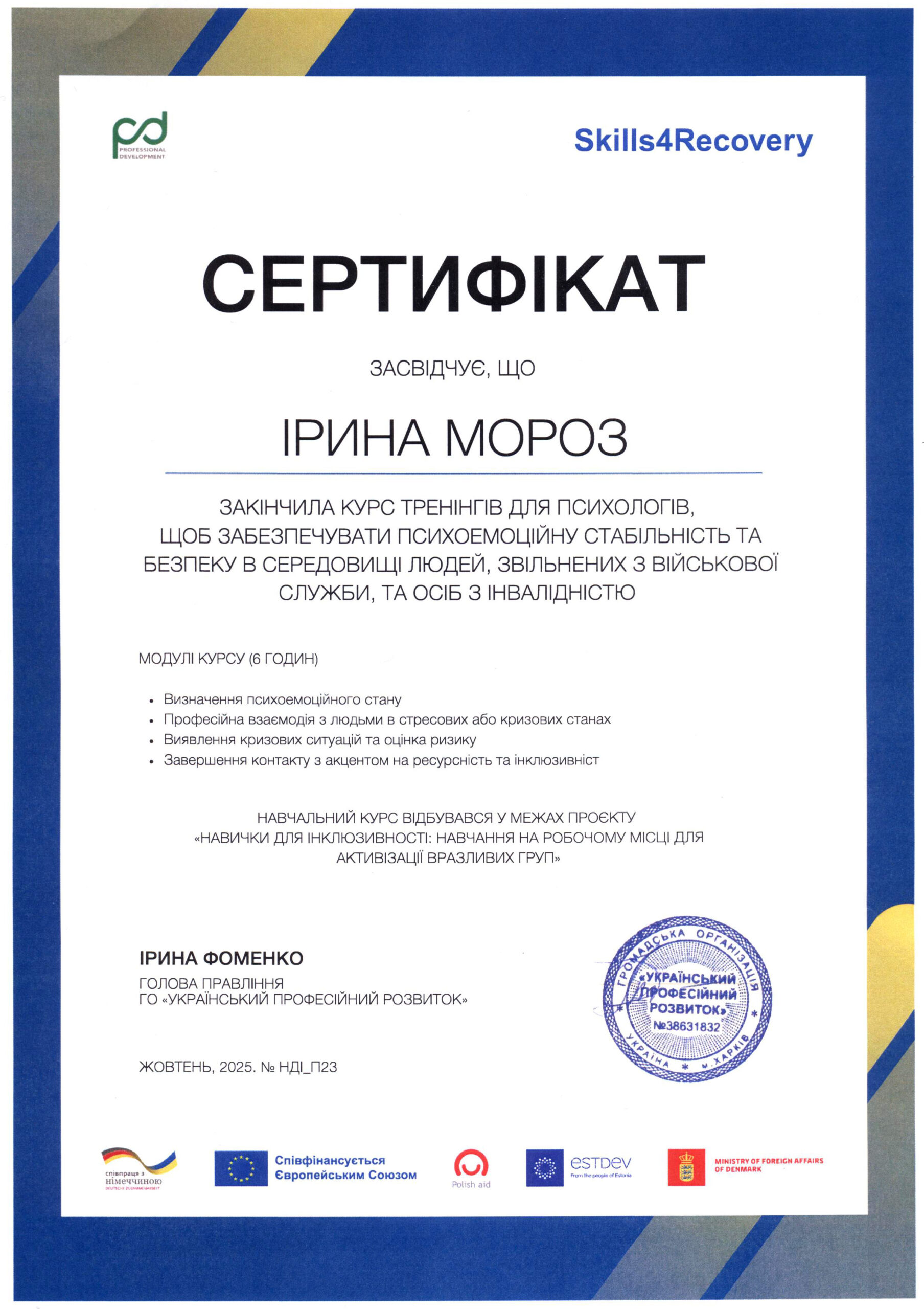 МОРОЗ ІРИНА МИХАЙЛІВНА