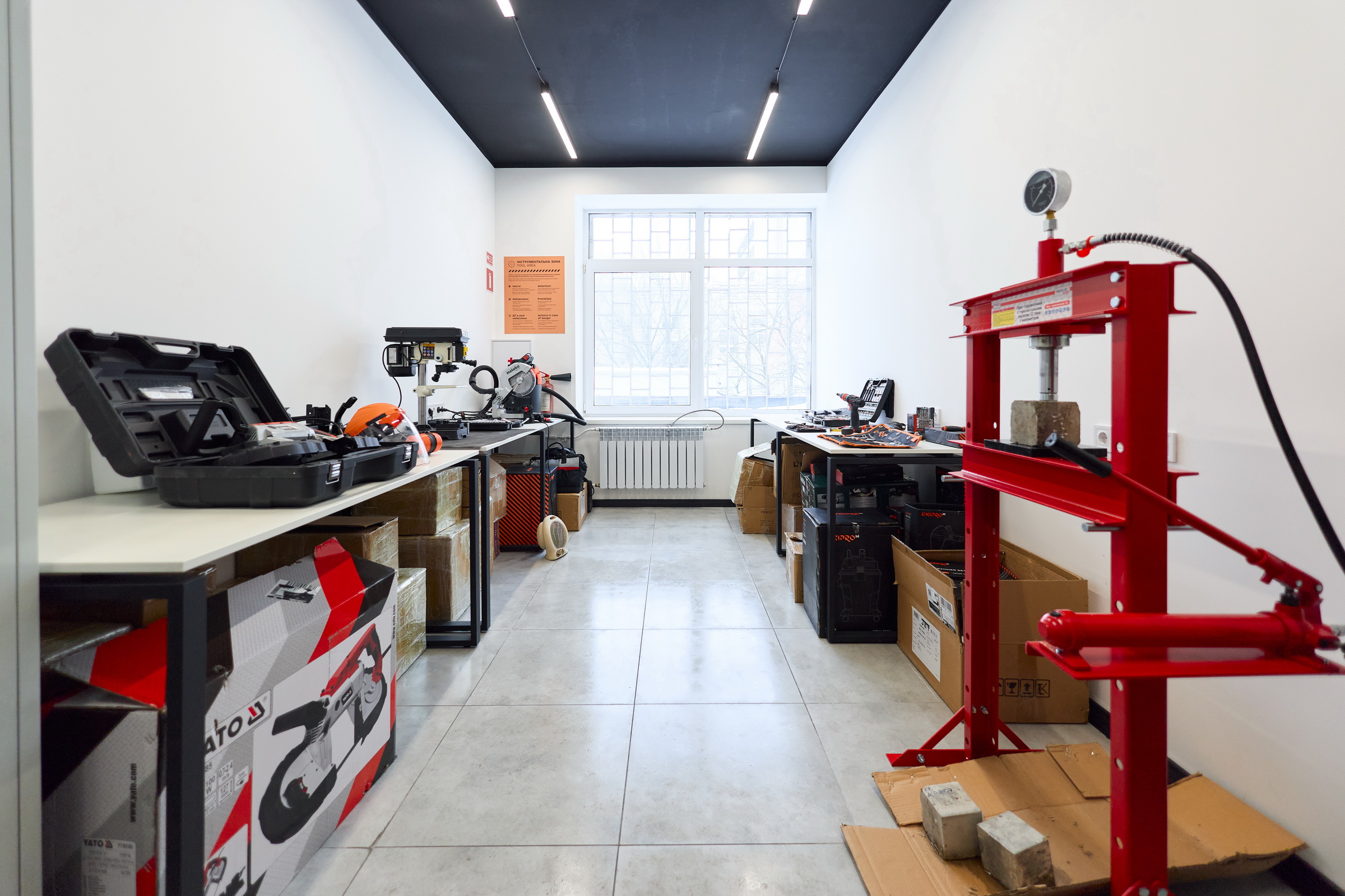 - Інструментальна зона — для механічної обробки, доопрацювання вузлів і виготовлення оснастки.