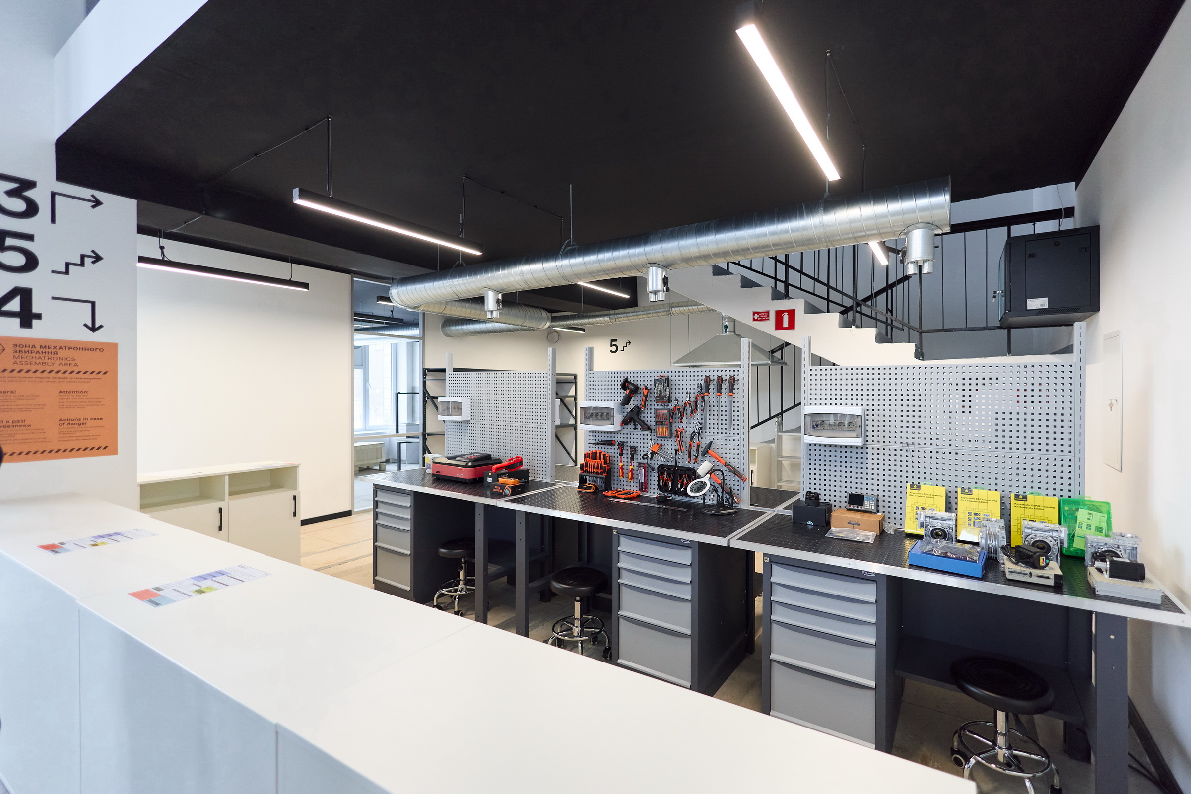 - Проєктна зона — простір для проєктування, програмування, зворотного інжинірингу та аналітичної підготовки проєктів.