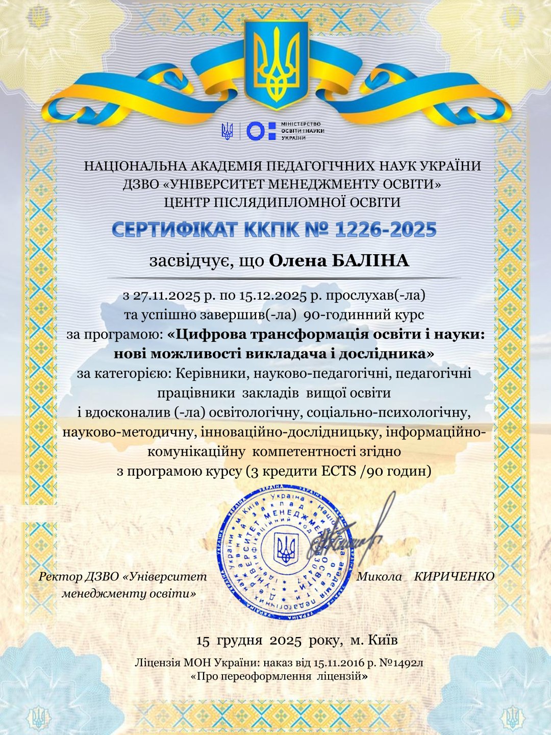 ПОЛТОРАЧЕНКО Наталія Іванівна