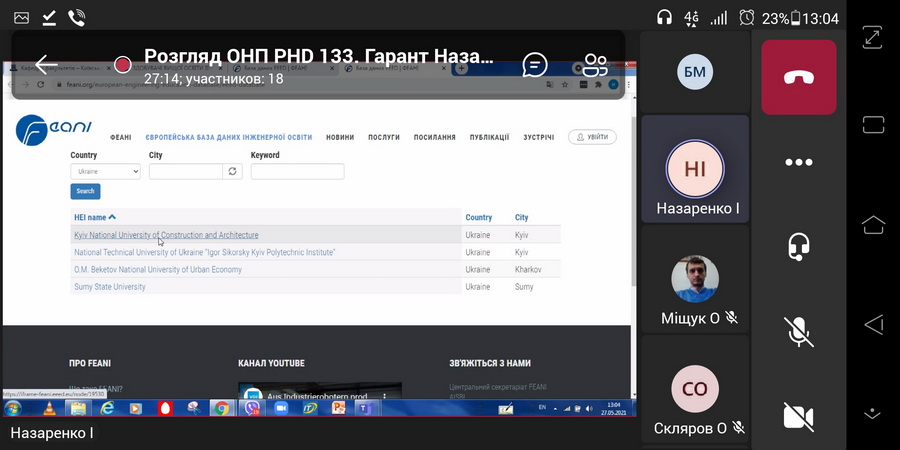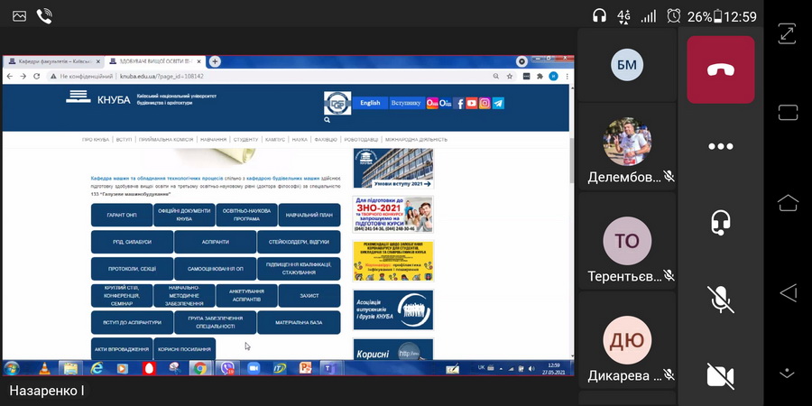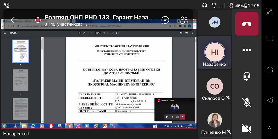 27.05.2021 у Київському національному університеті будівництва і архітектури відбулась робоча зустріч з гарантом освітньо-наукової програми 133 “Галузеве машинобудування” для підготовки здобувачів вищої освіти на третьому освітньо-науковому рівні (доктора філософії), завідувачем кафедри машин та обладнання технологічних процесів, доктором технічних наук, професором НАЗАРЕНКОМ Іваном Івановичем.