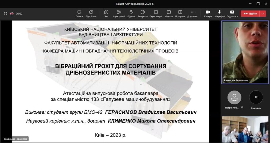 Кращою за спеціальністю 133 «Галузеве машинобудування» визнано роботу студента Герасимова Владислава Васильовича «Вібраційний грохіт для сортування дрібнозернистих матеріалів» (керівник – к.т.н., доцент кафедри МОТП Клименко Микола Олександрович).